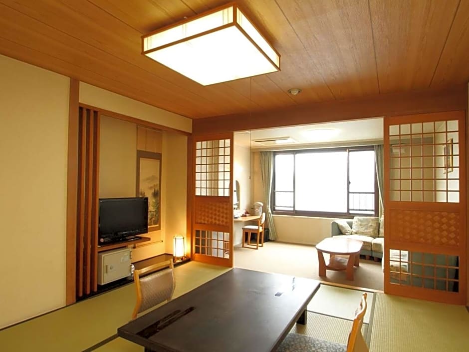 The family room provides air conditioning, tatami, as well as a private bathroom featuring a bath and a shower. The family room offers a safe deposit box, an electric kettle, yukata, heating and a flat-screen TV. The unit offers 4 futons.